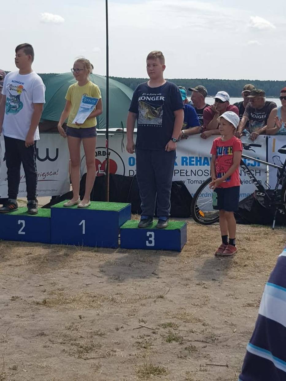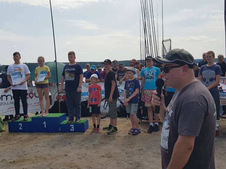 W kategorii juniorów 8-letni Nataniel Grzywacz w swoim pierwszym rzucie, któremu z racji wieku pomagał tata, którzy zarzucał wędki – złowił krąpia o wadze około 10 dkg, zdobywając 100 punktów. Bracia Maciaszczyk, tj. Patryk i Adrian – wspierani przez ojca Roberta szybko wysunęli się na prowadzenie mocno walcząc o podium. Jednak w końcowej fazie zawodów to 11 – letnia Julia Nojek łowiąca samodzielnie, pokazała chłopcom, że dziewczyny nie są słabsze i zawody przypieczętowała leszczem dającym jej około 300 punktów.