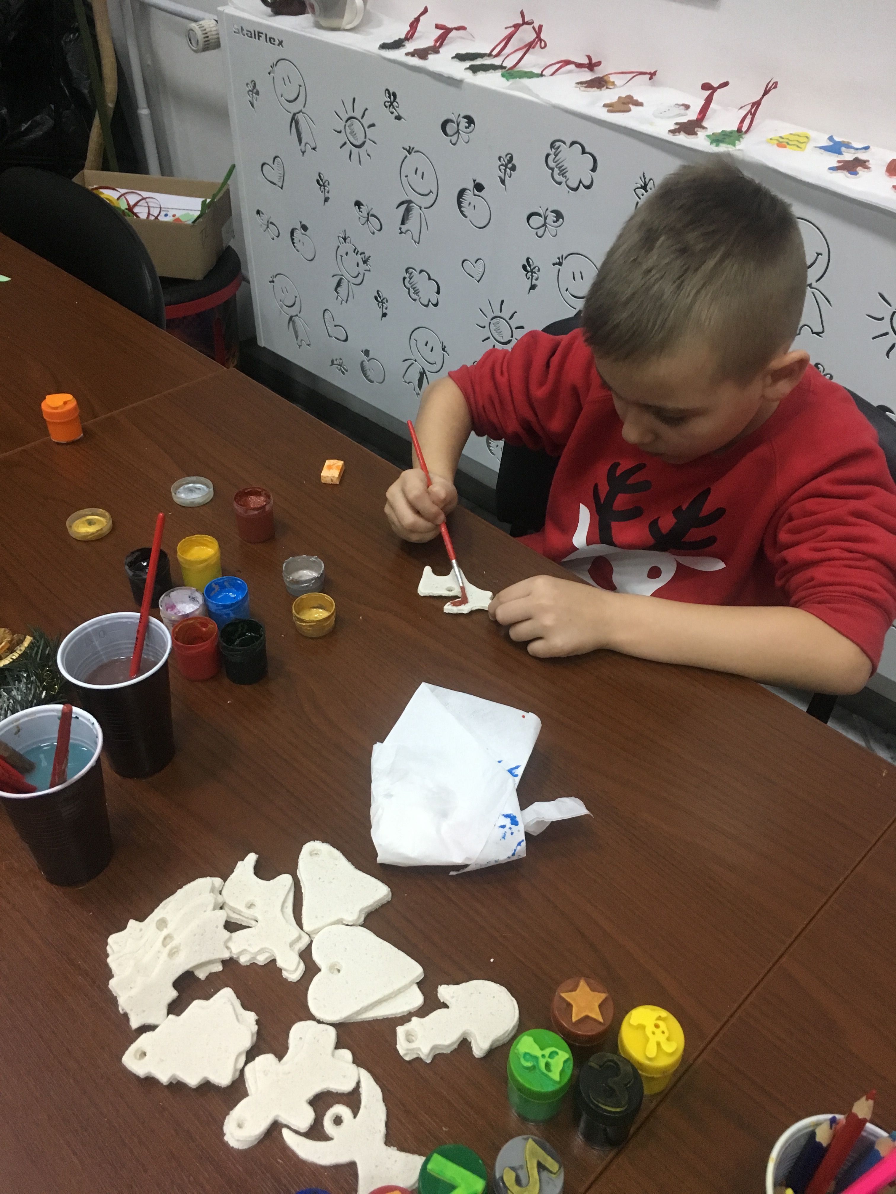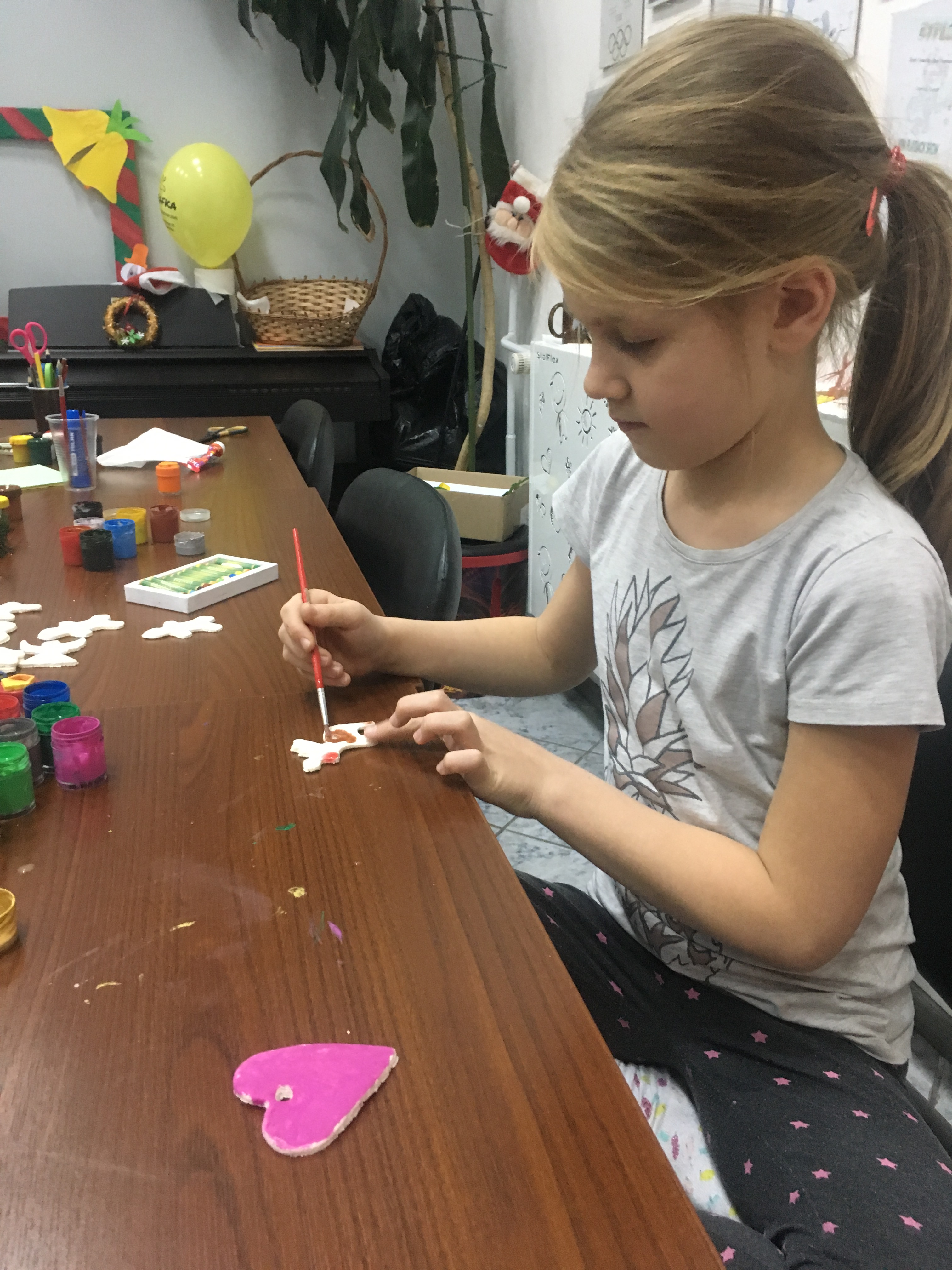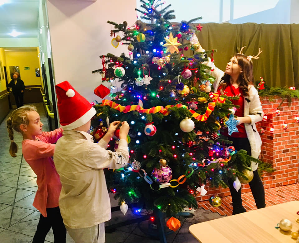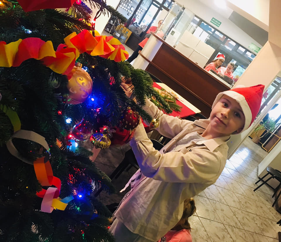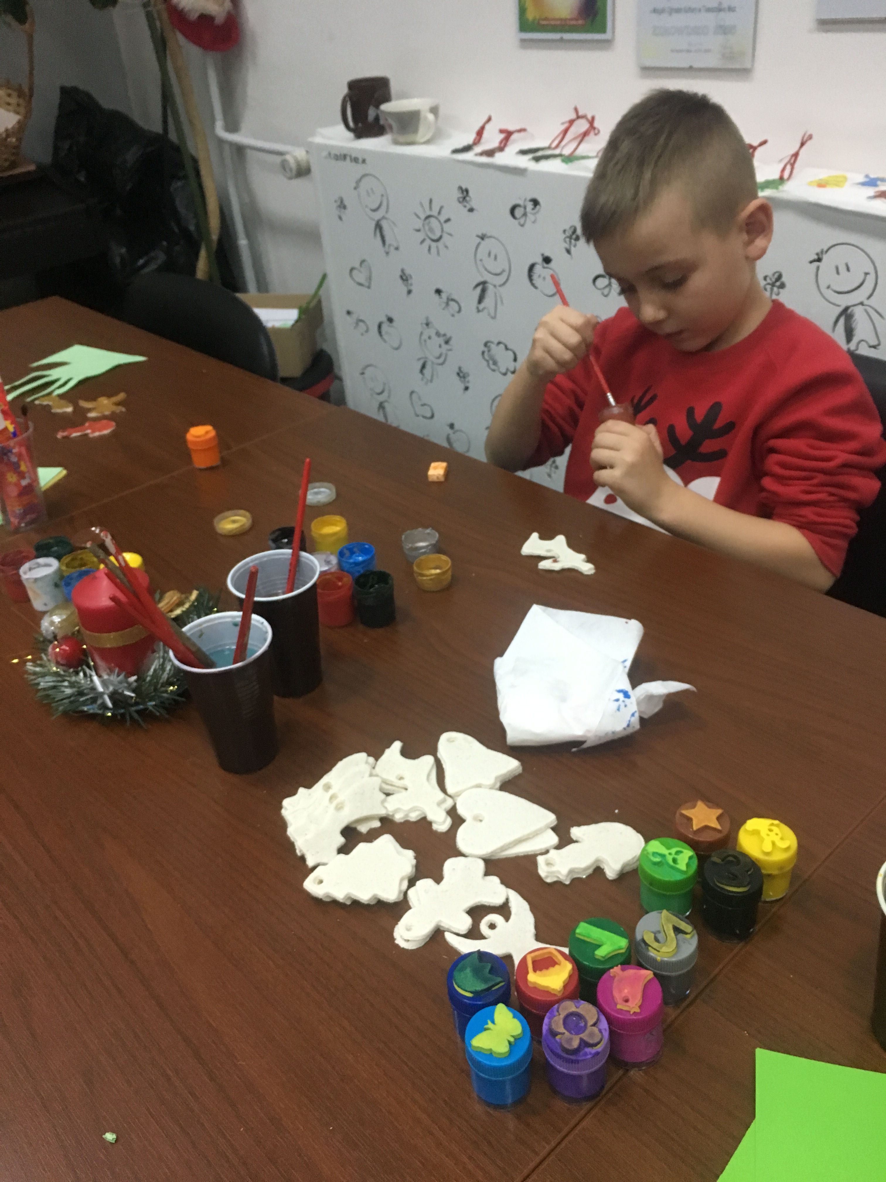 W trakcie całego dnia, podopieczni wraz z pracownikami ośrodka wykonali papierową choinkę, stworzoną z uprzednio odrysowanych i pokolorowanych własnych dłoni. A także wykreowali niesamowite ozdoby choinkowe z masy solnej, które teraz zdobią drzewko znajdujące się w ośrodku. Tego dnia powstała również świąteczna ramka, którą dzieci wykorzystywały do robienia zdjęć.