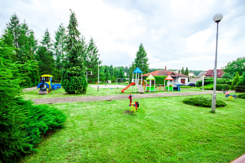 Do dyspozycji korzystających jest miejsce na ognisko oraz grill, zaś dla najmłodszych bezpieczny i kolorowy plac zabaw oraz boisko do koszykówki.